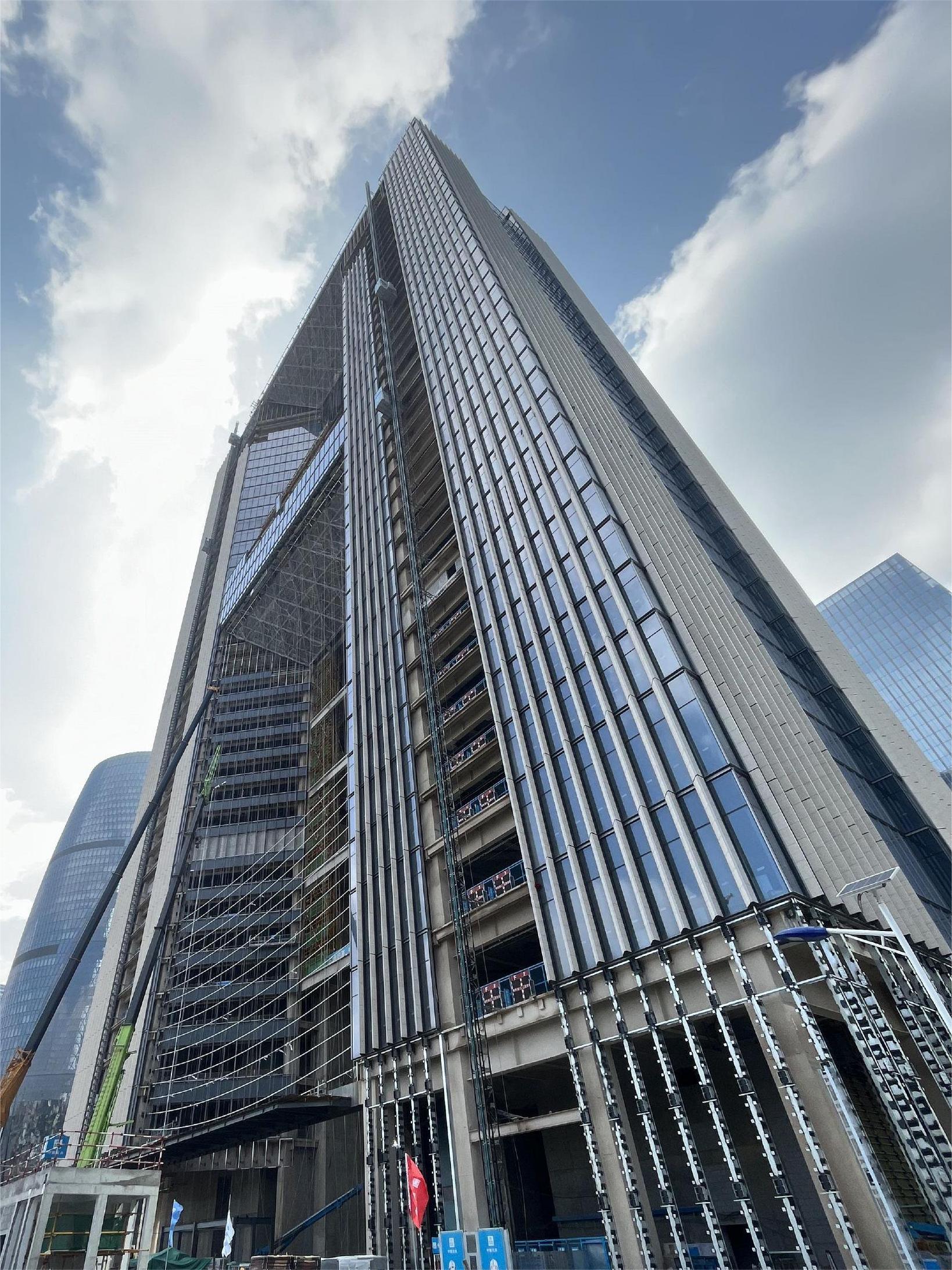 該工程由中國建筑第八工程局有限公司承建,雅泰實業(yè)集團(tuán)承接外墻裝飾部分材料供材約40000平方米。項目體量大、工期短,目前工程全面進(jìn)入外墻裝飾階段,集團(tuán)全力保障該項目的供材,預(yù)計10月完成外幕墻全部封閉。封閉后可以完整地看到大廈上部呈現(xiàn)為一個雄偉的大門,彰顯國家對信息建設(shè)的信心和決心,“信息之門”由此而來。