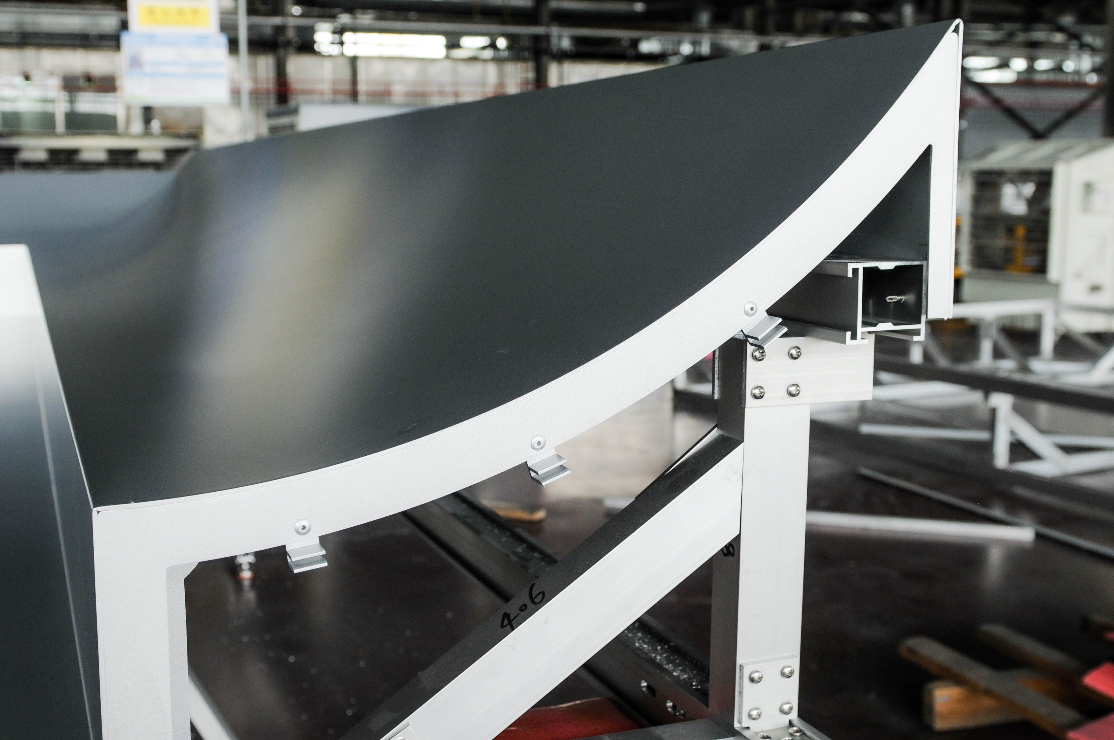 由于該項(xiàng)目幕墻板形狀特殊、工藝要求極高,給我們的加工和運(yùn)輸都帶來(lái)了極大的考驗(yàn)。為了保障產(chǎn)品質(zhì)量最后一關(guān),公司使用專用運(yùn)輸支架,該運(yùn)輸支架既環(huán)保又能保證產(chǎn)品不受任何磨損到達(dá)項(xiàng)目工地,充分展示了公司產(chǎn)品定制化、個(gè)性化的特點(diǎn)。
