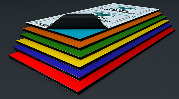 鋁塑板上下層為高強(qiáng)度涂裝鋁箔,中間層為無(wú)毒防火高密度聚乙烯( PE )芯板,粘結(jié)層為高分子粘結(jié)膜。室外用鋁塑板,上層鋁箔涂覆氟碳樹(shù)脂涂層;室內(nèi)用鋁塑板,可采用聚酯樹(shù)脂涂層和丙烯酸樹(shù)脂涂層,亦能滿足其使用要求。